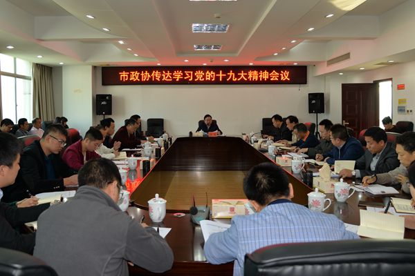 10月30日上午,怀化市政协召开机关全体工作人员会议,传达学习党的十九大精神。市政协主席李军主持并讲话,市政协副主席黄雪鸿,市政协秘书长胡扬帆参加。