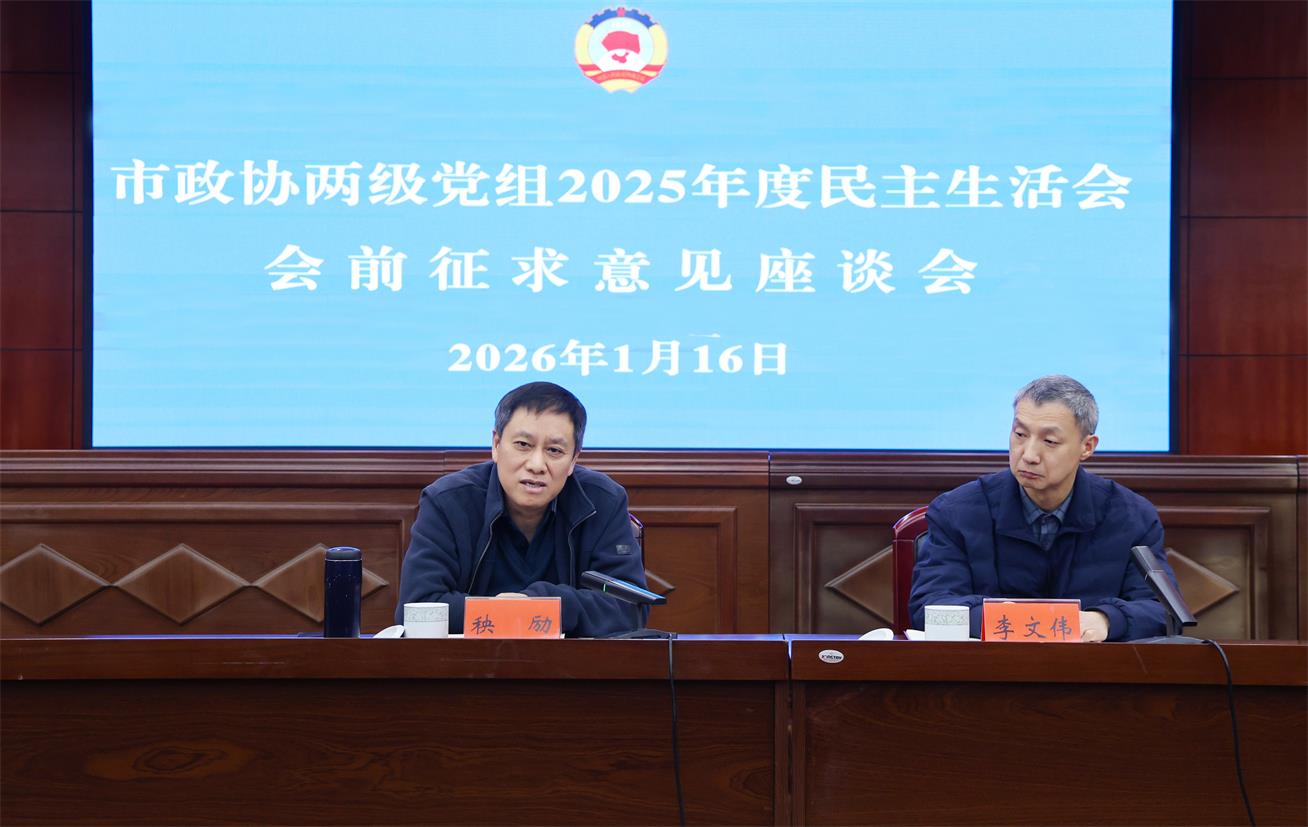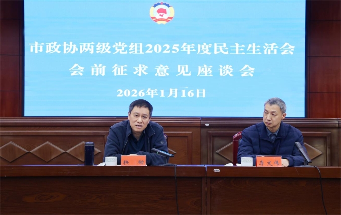 根据中央、省委、市委有关要求和市政协党组部署安排,1月16日上午,岳阳市政协召开两级党组2025年度民主生活会会前征求意见座谈会,邀请县市区政协、各民主党派、工商联、委员工作室党建指导员及机关退休老同志代表参加。市政协党组副书记秧励出席会议并讲话,市政协副秘书长李文伟主持。