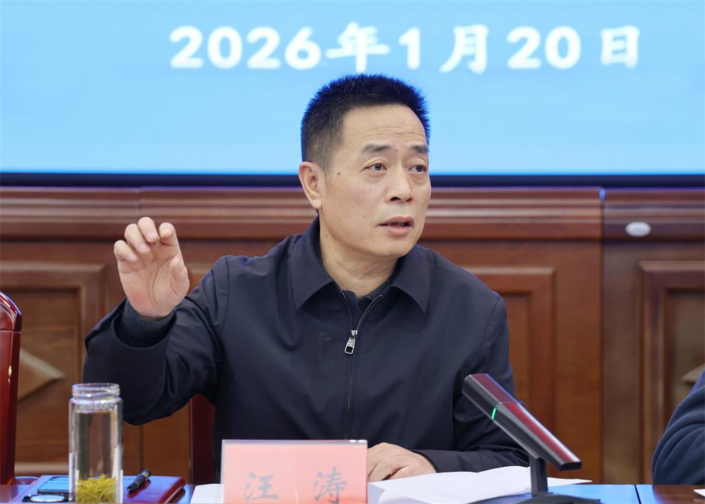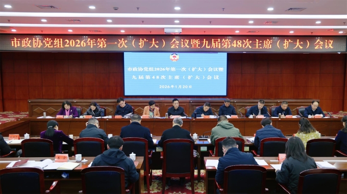 1月20日,岳阳市政协党组2026年第一次(扩大)会议暨九届第四十八次主席(扩大)会议召开,传达学习习近平总书记在中央经济工作会议上的重要讲话精神、在全国政协新年茶话会上的重要讲话精神、在二十届中央纪委五次全会上的重要讲话精神等,以及市“四大家”主要负责人联席会议精神。市政协主席、党组书记汪涛主持,市政协党组和主席会议成员秧励、何祚云、李文、李运帷、张赟、高鸽子、朱平波、李永波等出席,市政协原秘书长、办公室一级调研员陈念军,市政协机关党组全体成员及非党组成员的专委会主任等列席。