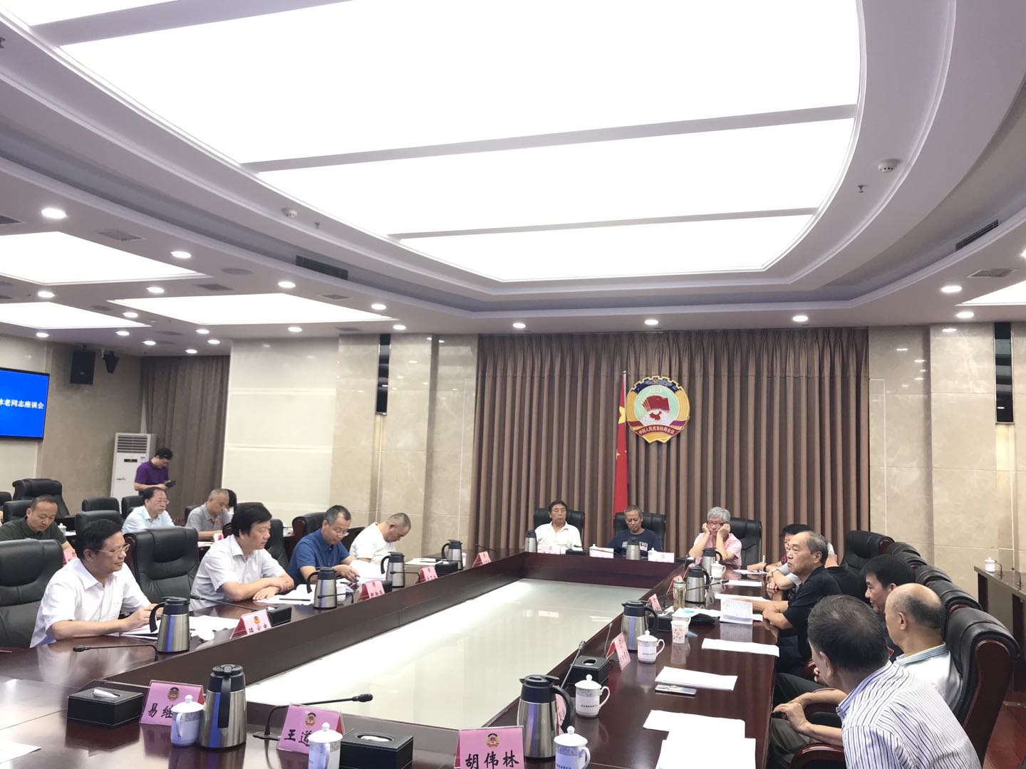 7月27日上午,机关组织召开离退休老同志座谈会。会议由副秘书长陈宏忠主持。秘书长卿渐伟,副秘书长、办公厅主任许石林,办公厅副主任王明强,秘书处、人事处、行管办、保卫处、宣传处、机关党委、云管理中心、机关后勤服务中心负责同志和离退处全体同志参加会议。参加会议的老同志有老干总支成员、老干各支部负责人和老同志代表。