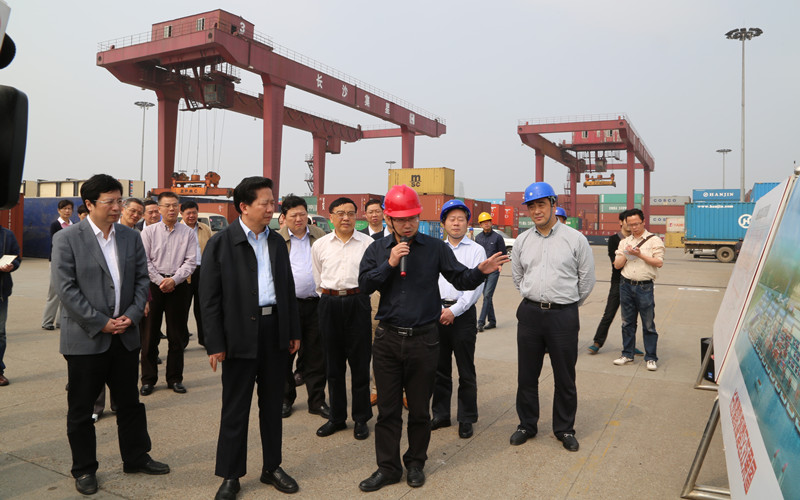 长沙霞凝港规划建设货运泊位14个,其中千吨级泊位11个,其他泊位3个,港口年吞吐能力集装箱20万吨。港区工程分三期建设,其中一、二期工程已建成,目前第三期工程正有序推进,计划在新建多个千吨级泊位同时,建设1条铁路货运专线,实现航运、铁路运输无缝对接。来到霞凝港货运码头,陈求发详细了解了港区第三期工程的规划设计、投资规模、建设进度等情况,询问了近年来港口货运的发展形势。得知上半月过港集装箱已超过5000标箱,年内有望突破10万标箱,陈求发连连点头,叮嘱港区负责人结合数字化技术优化管理,进一步提升物流效率。陈求发还先后走访了长沙临空产业园和空港物流园项目建设现场,认真了解了两个园区的项目定位、产业布局、建设进度、政策配套等情况,并关切询问了设在物流园内的临空综合保税区申报进展。