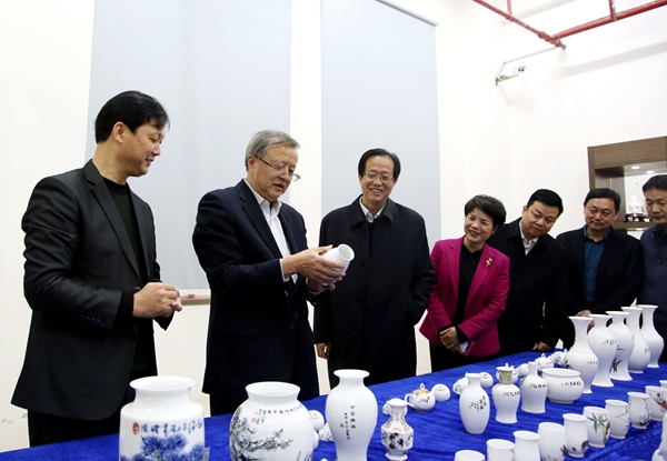 调研组一行参观考察了华联瓷业、中洲烟花、醴陵陶瓷博物馆、醴泉窑艺、大球泥瓷艺(醴陵)生产基地。醴陵现有陶瓷企业501家,形成了集陶瓷材料、制造、机械、釉料、配送物流等于一体的完整产业链;有花炮企业289家,14大类4000余种产品,产量占全球份额的10%以上。去年,该市陶瓷、花炮产业分别实现产值623.8亿元、195.4亿元。为对接“一带一路”国家新战略,今年醴陵市将继续举办高规格陶瓷博览会,积极打通花炮“铁海联运”出口通道,加快湖南工业大学醴陵陶瓷学院和陶瓷烟花职业技术学校建设等。