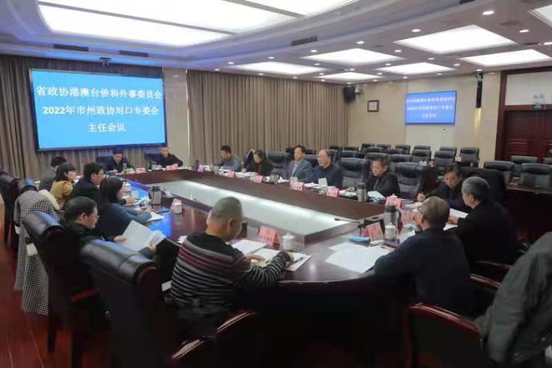 2月24日下午,省政协港澳台侨和外事委员会组织召开2022年市州对口专委会主任会议。会议由省政协港澳台侨和外事委驻会副主任李国雄主持,十四个市州政协对口专委会主任参加会议。