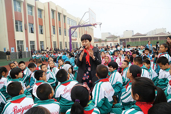 汤素兰在学校与孩子们交流
