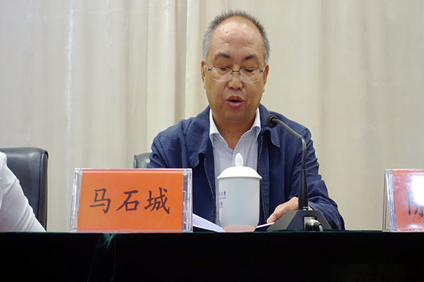 马石城在闭幕式上讲话。他对民进湖南师范大学委员会为湖南民进发展建设所作的贡献表示充分肯定,并对委员会今后如何加强思想建设、班子建设、开展好组织活动、做好本职工作等方面提出了明确要求。