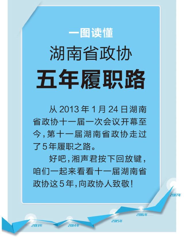 从2013年1月24日湖南省政协十一届一次会议开幕至今,第十一届湖南省政协走过了5年履职之路。好吧,湘声君按下回放键,咱们一起来看看湖南政协这5年,向政协人致敬!5年来...