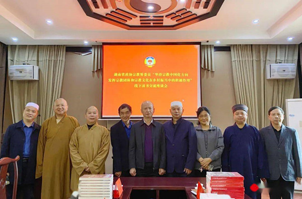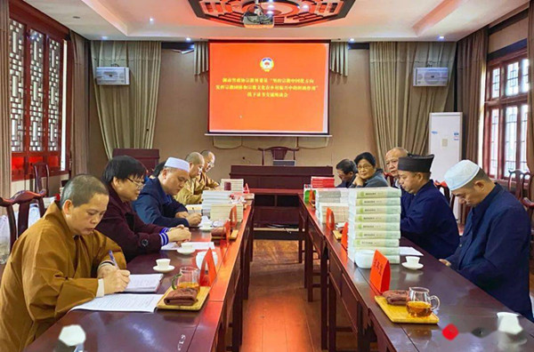 10月29日,湖南省政协宗教界委员赴邵阳市玉清宫召开“坚持宗教中国化方向,发挥宗教团体和宗教文化在乡村振兴中的积极作用”线下读书交流座谈会。委员们学习了《习近平谈治国理政》(第三卷)和《习近平关于“三农”工作论述摘编》等,围绕主题交流发言,互赠书籍,并围绕推荐书籍谈读书体会。