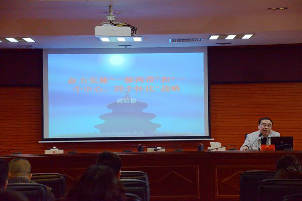 原市委党校副校长黄贻修同志以《奋力实施“一极两带”和“一个中心、四个怀化”战略》为题作了专题辅导报告。(谭勇军)