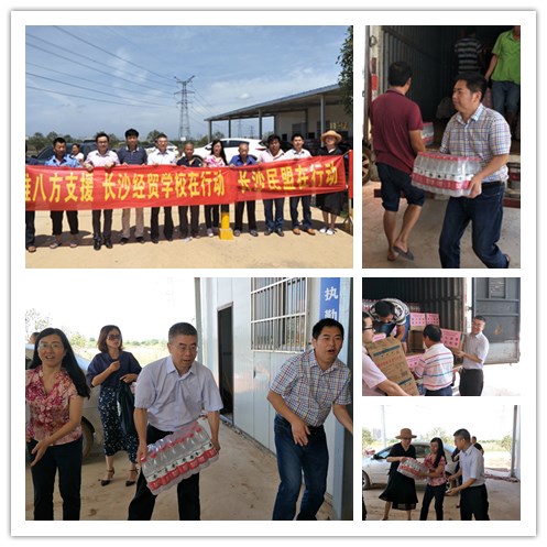 为积极支持灾后重建,7月6日上午,民盟湖南省委办公室主任傅小松、组织处处长徐智,民盟长沙市委主委张庆和、专职副主委刘志红率民盟市委办公室主任赵睿,盟员、长沙经贸职业中专学校董事长周永亮及其学校部分中层干部等组成的赈灾慰问队,赴长沙县黄兴镇高塘村,为受灾群众送去满满一卡车物资,并向10位受灾最严重的村民捐赠了慰问金,鼓励他们树立信心,积极进行灾后重建。