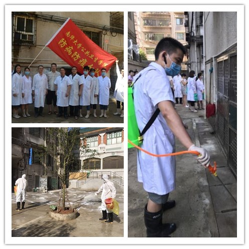 近期受强降雨影响,湖南省衡阳市雁峰区低洼区域高兴社区污水排放不畅,致民房底层被深1米左右的污水浸泡近三天,污水退后,为有效防止该区传染病的发生和传播,7月5日晚上按照南华大学公共卫生学院龙鼎新院长的安排,南华大学公共卫生学院预防医学系主任张朝晖、党支部书记贺栋梁、学工办主任伍卫国及8名研究生、本科生立即成立了南华大学公共卫生学院防病防疫分队。