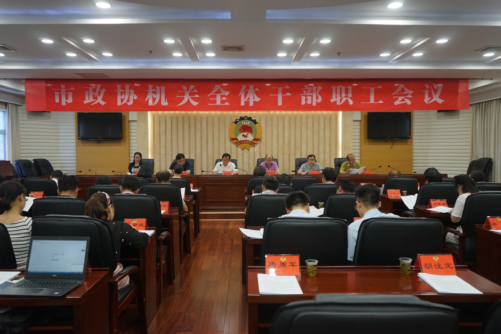 8月2日上午,永州市政协召开机关全体干部职工会议,学习传达市委五届三次全会精神,学习习近平总书记“726”重要讲话精神。市政协主席蒋善生出席并讲话,市政协机关全体干部职工参加会议。